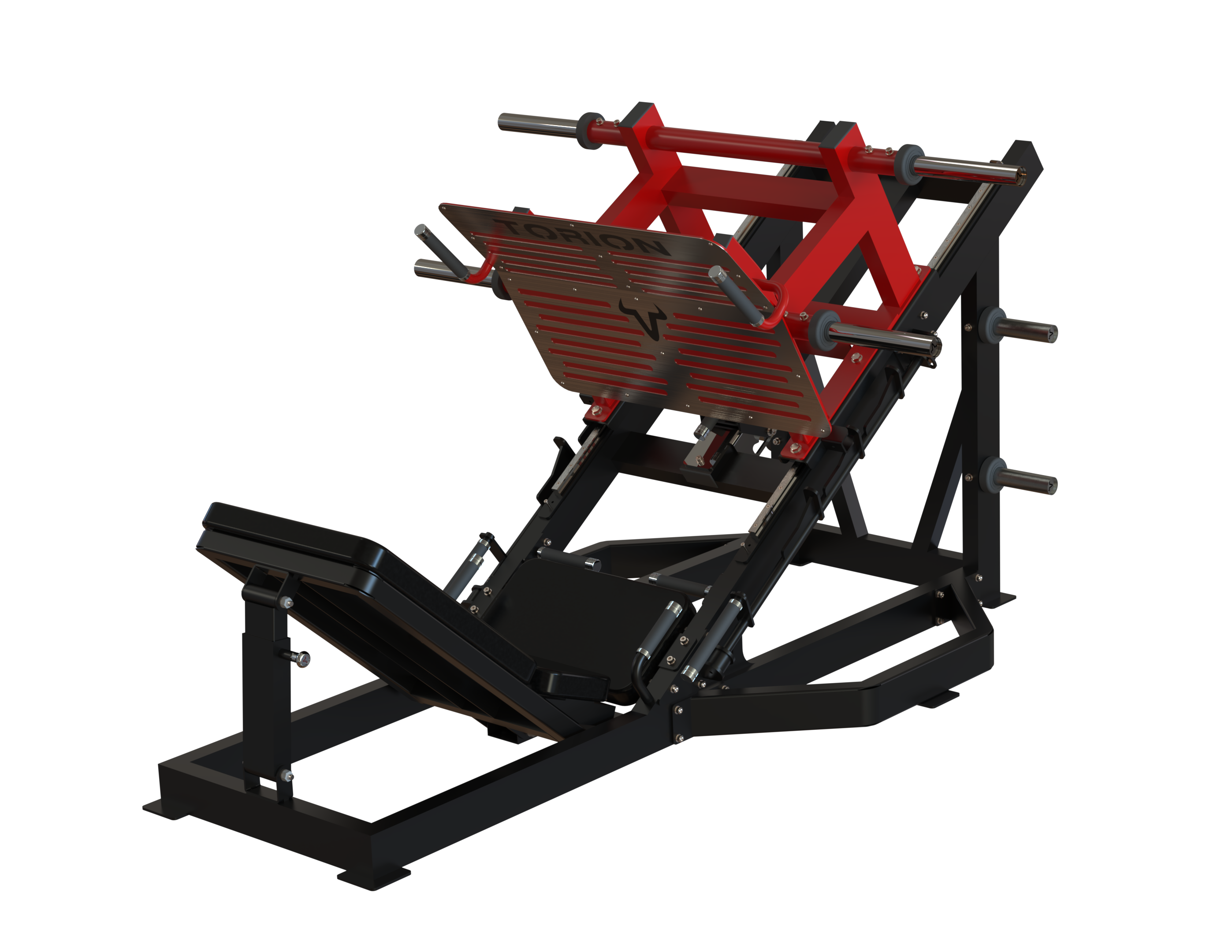 O LEG PRESS 45º Torion encaminha quadríceps e glúteos em trajetória inclinada, com apoios que estabilizam o tronco e distribuem carga de forma biomecânica. Suporta uso intenso e volumes altos típicos da musculação de pernas em academias premium. Combina segurança, conforto e capacidade estrutural para cargas pesadas ao longo do tempo.